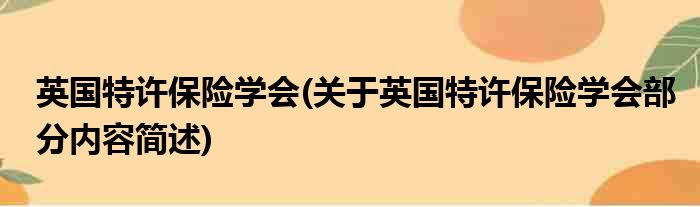导读 大家好,今天小方来说说一篇关于英国特许保险学会,关于英国特许保险学会部分内容简述的文章,那么现在就为大家来简单介绍下,希望对各位小