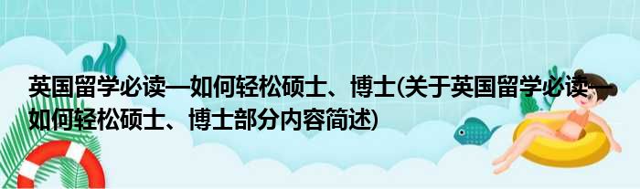 英国留学必读—如何轻松硕士、博士(关于英国留学必读—如何轻松硕士、博士部分内容简述)