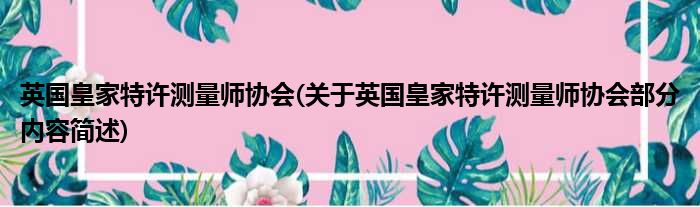 导读 大家好,今天小方来说说一篇关于英国皇家特许测量师协会,关于英国皇家特许测量师协会部分内容简述的文章,那么现在就为大家来简单介绍下,