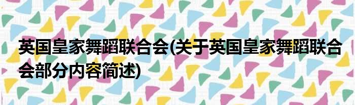 导读 大家好,今天小方来说说一篇关于英国皇家舞蹈联合会,关于英国皇家舞蹈联合会部分内容简述的文章,那么现在就为大家来简单介绍下,希望对各