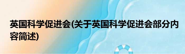 英国科学促进会(关于英国科学促进会部分内容简述)