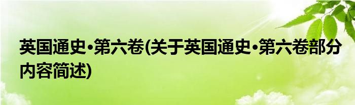 英国通史·第六卷(关于英国通史·第六卷部分内容简述)