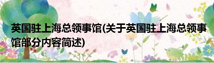 英国驻上海总领事馆(关于英国驻上海总领事馆部分内容简述)