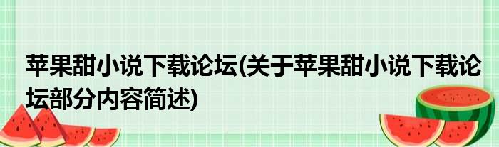 苹果甜小说下载论坛(关于苹果甜小说下载论坛部分内容简述)