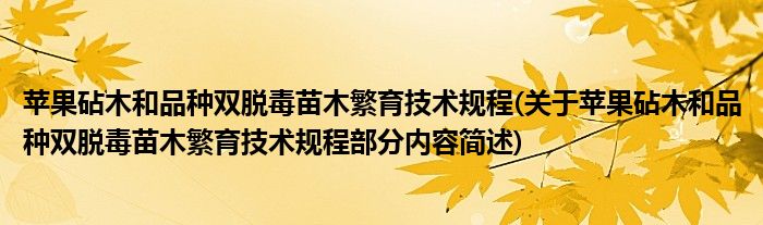 苹果砧木和品种双脱毒苗木繁育技术规程(关于苹果砧木和品种双脱毒苗木繁育技术规程部分内容简述)