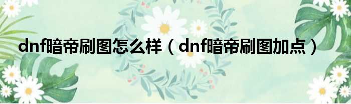 大家好,小爱来为大家解答以上问题。dnf暗帝刷图怎么样,dnf暗帝刷图加点很多人还不知道,现在让我们一起来看看吧!