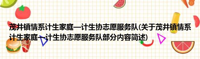 茂井镇情系计生家庭—计生协志愿服务队(关于茂井镇情系计生家庭—计生协志愿服务队部分内容简述)