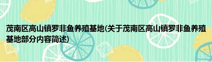 茂南区高山镇罗非鱼养殖基地(关于茂南区高山镇罗非鱼养殖基地部分内容简述)