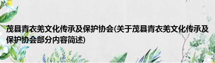 茂县青衣羌文化传承及保护协会(关于茂县青衣羌文化传承及保护协会部分内容简述)