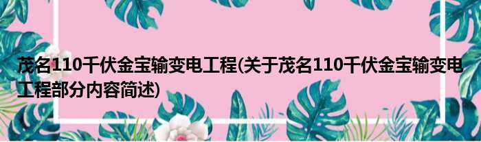 茂名110千伏金宝输变电工程(关于茂名110千伏金宝输变电工程部分内容简述)