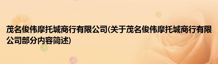 茂名俊伟摩托城商行有限公司(关于茂名俊伟摩托城商行有限公司部分内容简述)