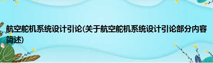 航空舵机系统设计引论(关于航空舵机系统设计引论部分内容简述)