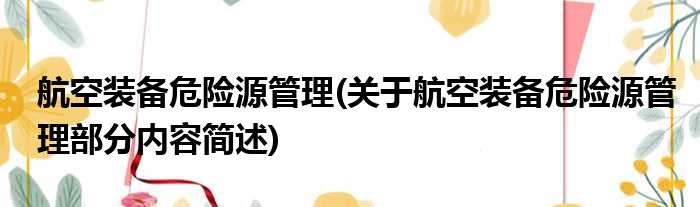 航空装备危险源管理(关于航空装备危险源管理部分内容简述)