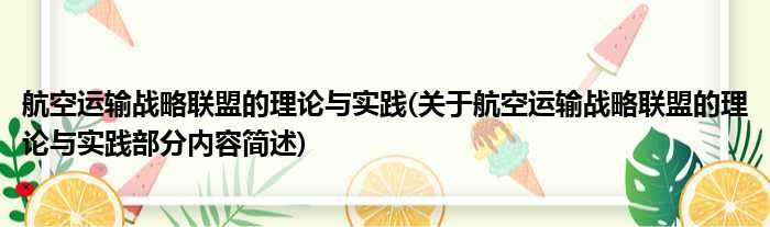 航空运输战略联盟的理论与实践(关于航空运输战略联盟的理论与实践部分内容简述)
