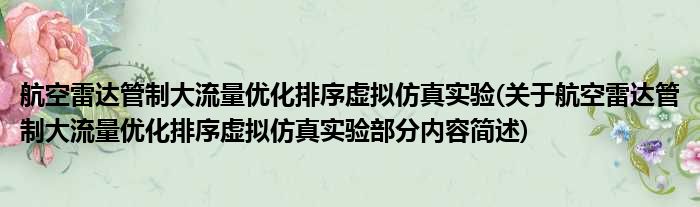 航空雷达管制大流量优化排序虚拟仿真实验(关于航空雷达管制大流量优化排序虚拟仿真实验部分内容简述)