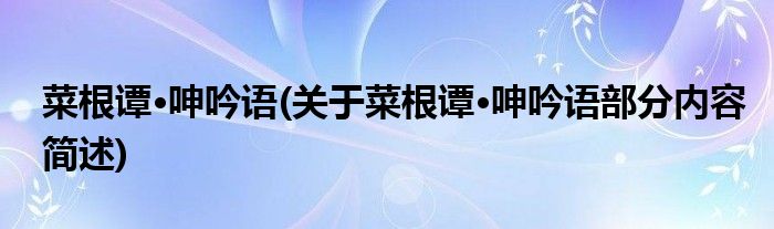 导读 大家好,今天小方来说说一篇关于菜根谭·呻吟语,关于菜根谭·呻吟语部分内容简述的文章,那么现在就为大家来简单介绍下,希望对各位小伙伴