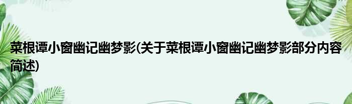 导读 大家好,今天小方来说说一篇关于菜根谭小窗幽记幽梦影,关于菜根谭小窗幽记幽梦影部分内容简述的文章,那么现在就为大家来简单介绍下,希望