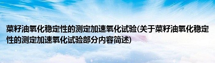 菜籽油氧化稳定性的测定加速氧化试验(关于菜籽油氧化稳定性的测定加速氧化试验部分内容简述)