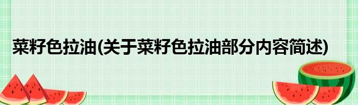 菜籽色拉油(关于菜籽色拉油部分内容简述)