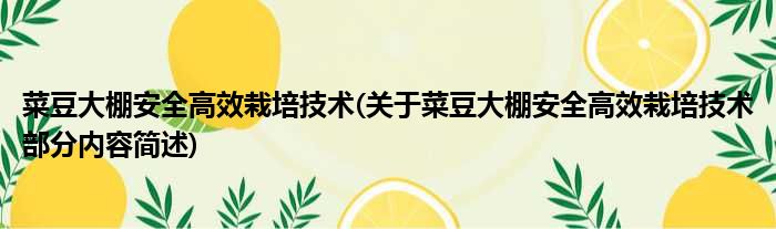 菜豆大棚安全高效栽培技术(关于菜豆大棚安全高效栽培技术部分内容简述)