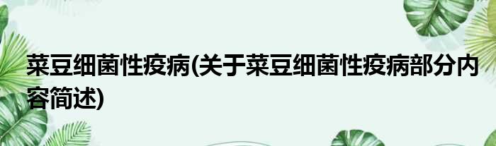 菜豆细菌性疫病(关于菜豆细菌性疫病部分内容简述)