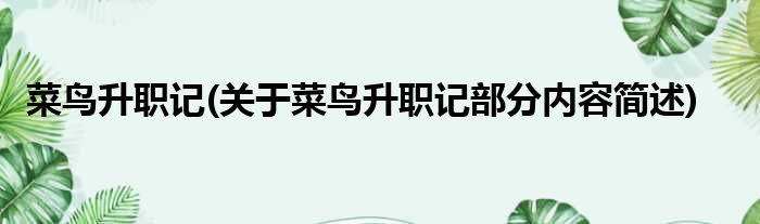 菜鸟升职记(关于菜鸟升职记部分内容简述)