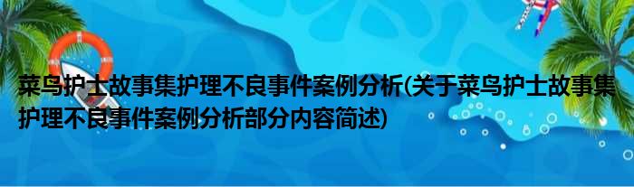 菜鸟护士故事集护理不良事件案例分析(关于菜鸟护士故事集护理不良事件案例分析部分内容简述)