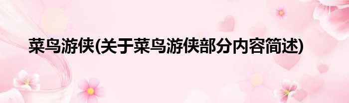 菜鸟游侠(关于菜鸟游侠部分内容简述)