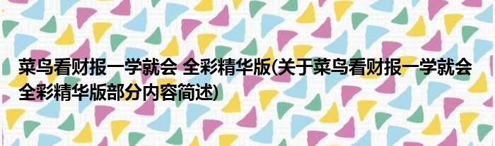 导读 大家好,今天小方来说说一篇关于菜鸟看财报一学就会 全彩精华版,关于菜鸟看财报一学就会 全彩精华版部分内容简述的文章,那么现在就为大