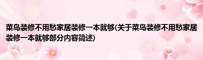 导读 大家好,今天小方来说说一篇关于菜鸟装修不用愁家居装修一本就够,关于菜鸟装修不用愁家居装修一本就够部分内容简述的文章,那么现在就为大