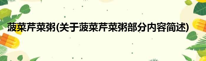 菠菜芹菜粥(关于菠菜芹菜粥部分内容简述)