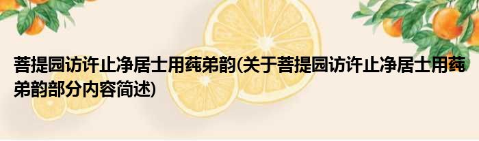 菩提园访许止净居士用莼弟韵(关于菩提园访许止净居士用莼弟韵部分内容简述)