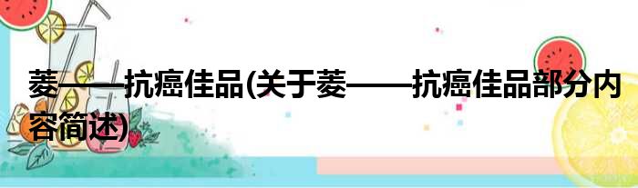 菱——抗癌佳品(关于菱——抗癌佳品部分内容简述)