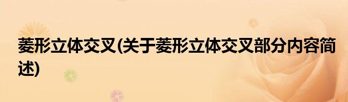 大家好,今天小方来说说一篇关于菱形立体交叉,关于菱形立体交叉部分内容简述的文章,那么现在就为大家来简单介绍下,希望对各位小伙伴们有所帮助。