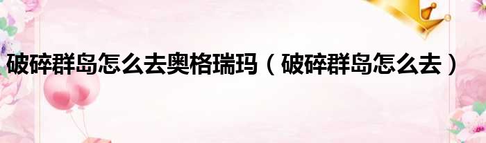 破碎群岛怎么去奥格瑞玛(破碎群岛怎么去)
