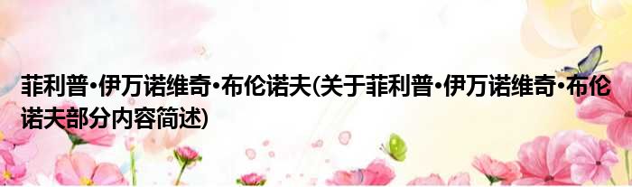 菲利普·伊万诺维奇·布伦诺夫(关于菲利普·伊万诺维奇·布伦诺夫部分内容简述)
