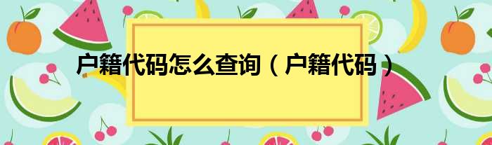 大家好,小爱来为大家解答以上问题。户籍代码怎么查询,户籍代码很多人还不知道,现在让我们一起来看看吧!