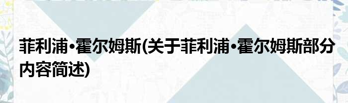 大家好,今天小方来说说一篇关于菲利浦·霍尔姆斯,关于菲利浦·霍尔姆斯部分内容简述的文章,那么现在就为大家来简单介绍下,希望对各位小伙伴们有所帮助。