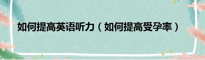 导读 大家好,小爱来为大家解答以上问题。如何提高英语听力,如何提高受孕率很多人还不知道,现在让我们一起来看看吧!1、1 保持良好的生活习惯
