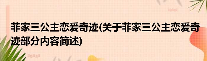 菲家三公主恋爱奇迹(关于菲家三公主恋爱奇迹部分内容简述)