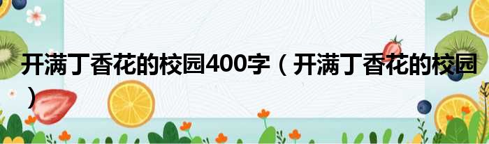 大家好,小爱来为大家解答以上问题。开满丁香花的校园400字,开满丁香花的校园很多人还不知道,现在让我们一起来看看吧!