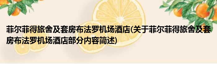 菲尔菲得旅舍及套房布法罗机场酒店(关于菲尔菲得旅舍及套房布法罗机场酒店部分内容简述)