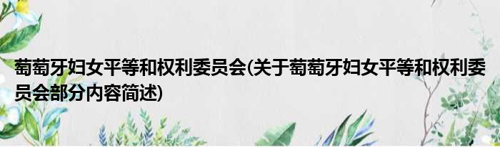 萄萄牙妇女平等和权利委员会(关于萄萄牙妇女平等和权利委员会部分内容简述)