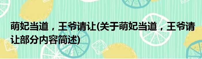 萌妃当道,王爷请让(关于萌妃当道,王爷请让部分内容简述)