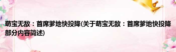 导读 大家好,今天小方来说说一篇关于萌宝无敌:首席爹地快投降,关于萌宝无敌:首席爹地快投降部分内容简述的文章,那么现在就为大家来简单介绍