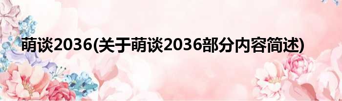 导读 大家好,今天小方来说说一篇关于萌谈2036,关于萌谈2036部分内容简述的文章,那么现在就为大家来简单介绍下,希望对各位小伙伴们有所帮助。