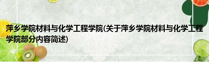 萍乡学院材料与化学工程学院(关于萍乡学院材料与化学工程学院部分内容简述)
