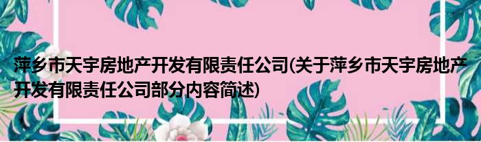 萍乡市天宇房地产开发有限责任公司(关于萍乡市天宇房地产开发有限责任公司部分内容简述)