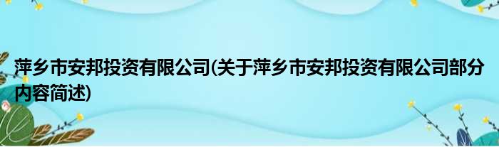 萍乡市安邦投资有限公司(关于萍乡市安邦投资有限公司部分内容简述)