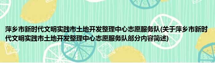 萍乡市新时代文明实践市土地开发整理中心志愿服务队(关于萍乡市新时代文明实践市土地开发整理中心志愿服务队部分内容简述)